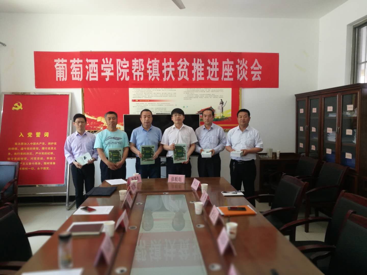 支部孟江飞副教授、化学工程市场党支部书记张予林副教授、葡萄酒学教研室靳国杰副教授、合阳示范站驻站专家张宗勤副教授、林学院李孟楼教授以及合阳葡萄试验示范站站长助理张鹏一行8人赴合阳县坊镇助力脱贫攻坚,发挥学院科教和技术优势,开展党建结对扶贫工作。