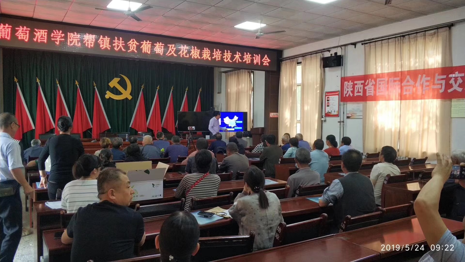助力地方产业发展,开展葡萄及花椒技术培训。5月24日,学院专家团在坊镇机关会议室组织召开了葡萄及花椒栽培技术集中培训会,坊镇葡萄和花椒种植户80余人参加了此次培训会。专家教授分别作葡萄花果期管理技术、花椒田间管理、葡萄酒酿造三个专题培训。解决了葡萄、花椒花果期管理存在的问题,通过提升果农田间管理的规范化、科学化水平实现提质增效,通过引导葡萄果农通过酿酒延伸农产品产业链,提升农产品附加值实现增收目的。本次技术培训会发放《冷棚红提葡萄栽培技术手册》260本,发放《葡萄栽培技术规程》150余本,切实帮助了农户,为坊镇脱贫攻坚和乡村振兴发挥了作用。