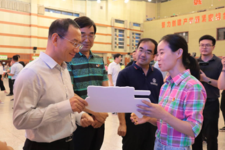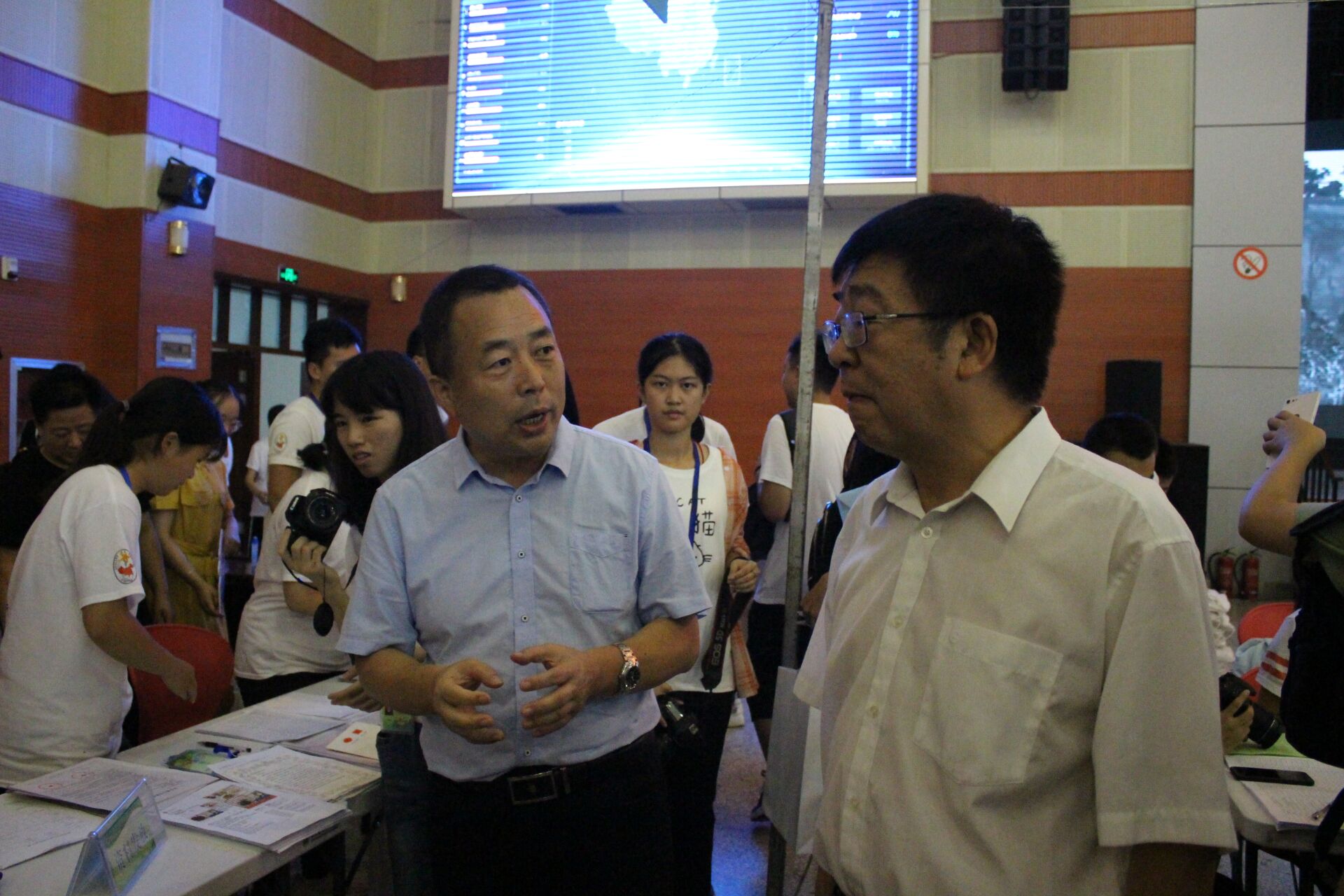 学院党委书记胡俊鹏向吴普特校长介绍学院迎新工作情况