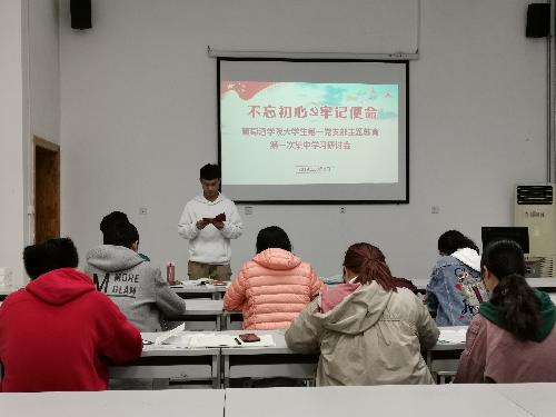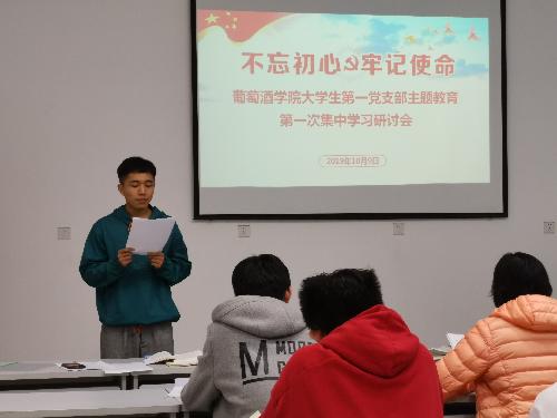 大学生第一党支部于10月9日下午在学院109教室举行党支部政治理论学习暨“不忘初心、牢记使命”主题教育第一次集中学习研讨会,会议由薛雪主持,邀请学院党委委员陶永胜主讲党课,支部全体在校党员参会。