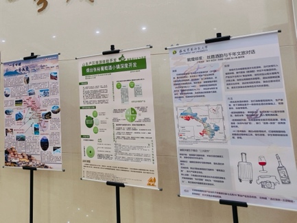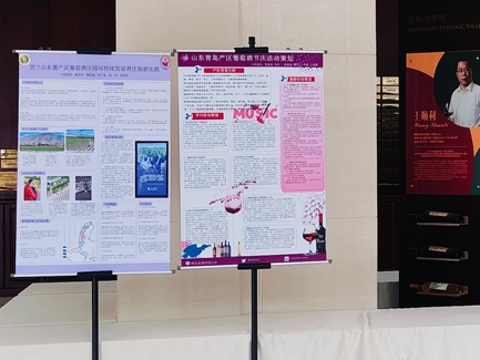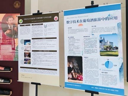 在结课阶段,学生以小组形式完成课程汇报及“葡萄酒文化与旅游”主题海报展。项目主题涵盖旅游路线规划、节庆活动策划、文旅融合、数字技术应用与可持续实践等多个方向,展现了学生扎实的问题意识、策划能力与本土转化思维。各小组围绕酒庄运营、游客体验、文化传播等内容进行创意呈现,既锻炼了跨学科表达能力,也实现了理论与实践的有效融合。