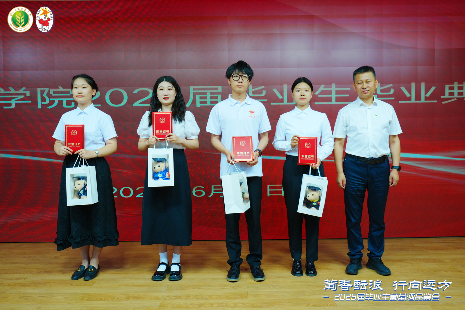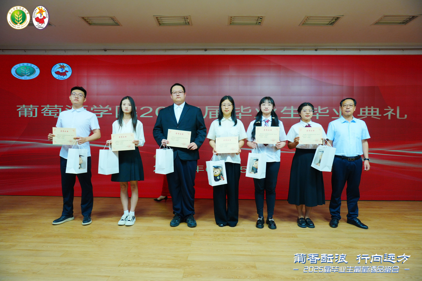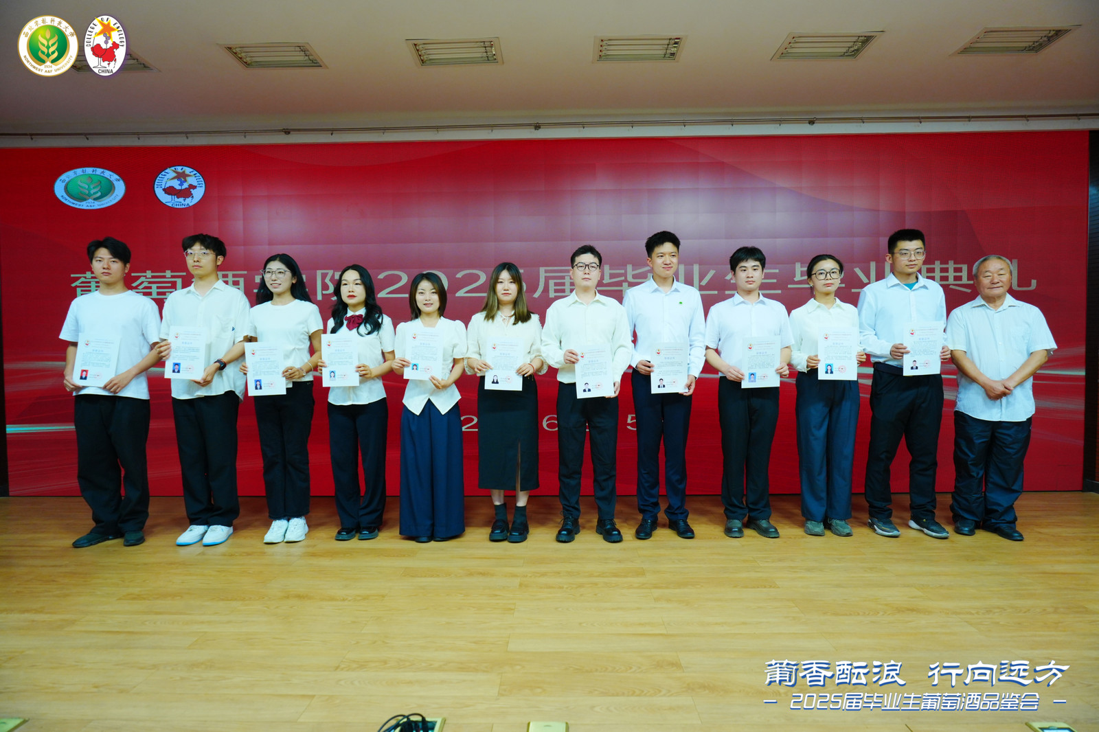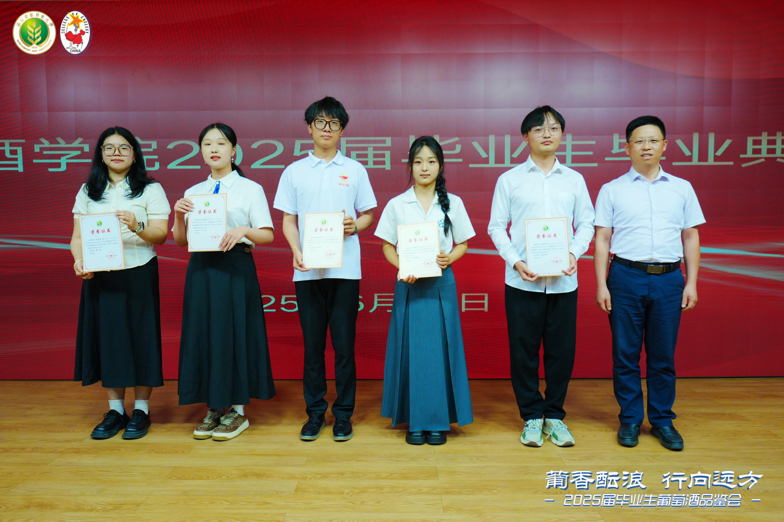 终身名誉院长李华教授,中国葡萄酒博物馆馆长、学院原院长王华教授,学院领导班子,各教研室主任,教师代表,毕业班班主任,毕业研究生导师,2025届全体毕业生以及毕业生家长代表出席毕业典礼。毕业典礼由学院党委书记郭建东主持。