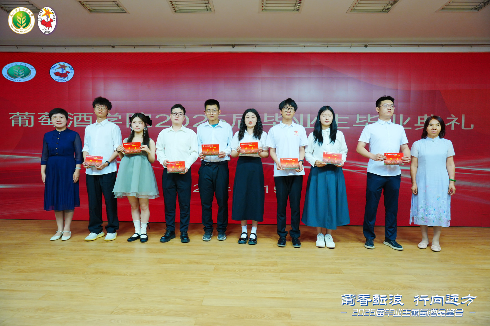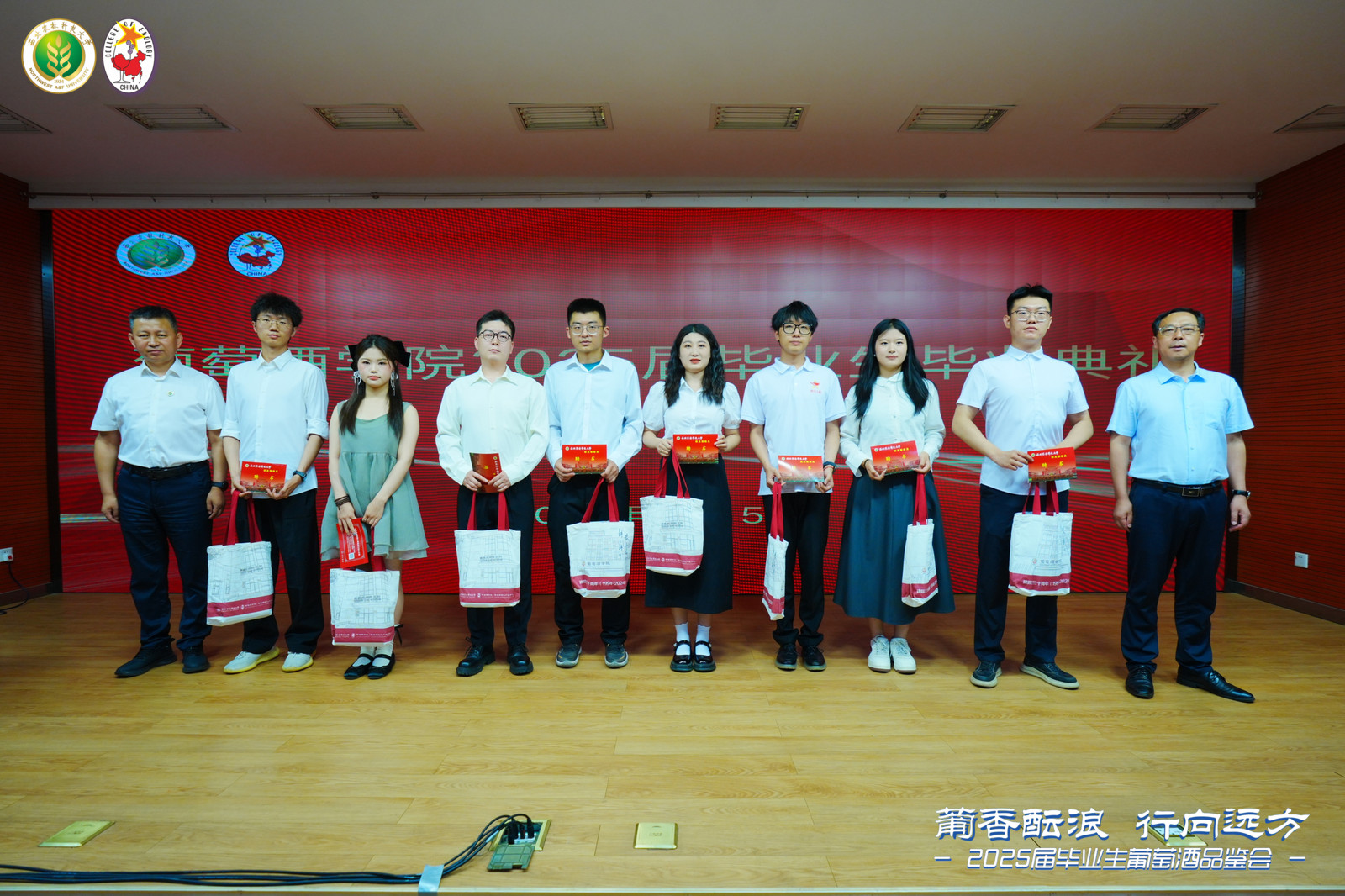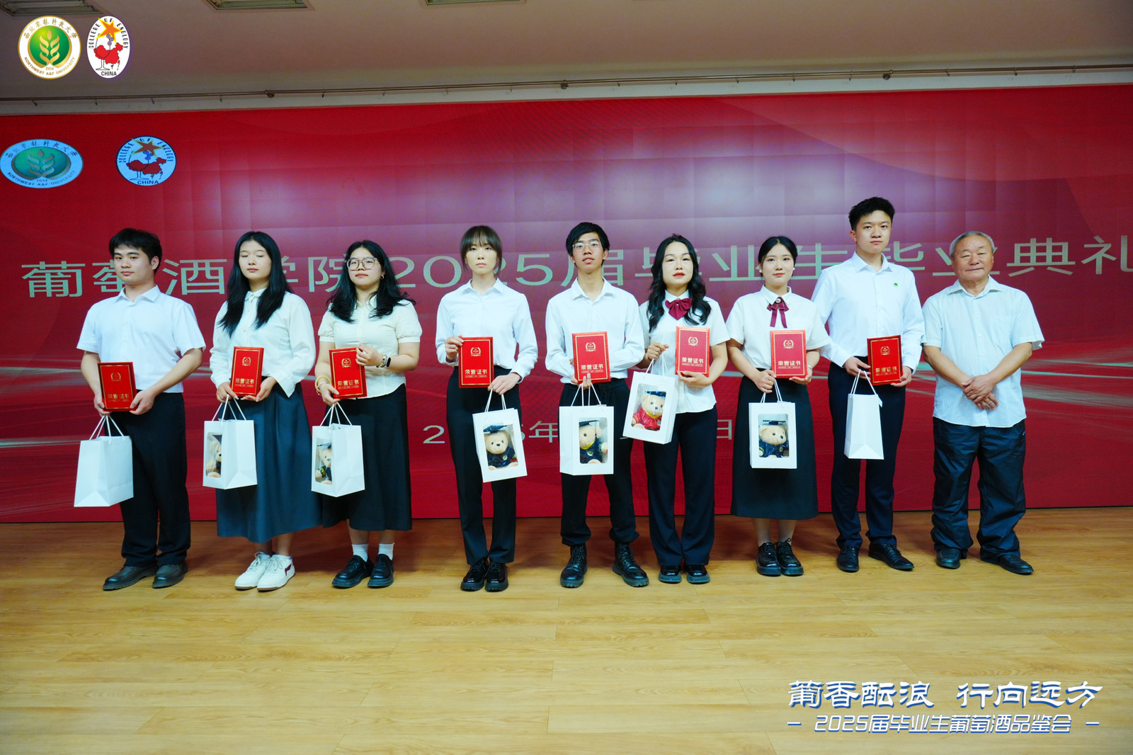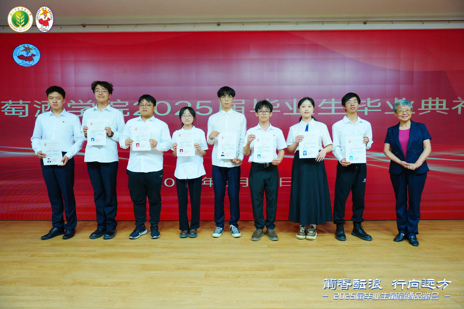终身名誉院长李华教授,中国葡萄酒博物馆馆长、学院原院长王华教授,学院领导班子,各教研室主任,教师代表,毕业班班主任,毕业研究生导师,2025届全体毕业生以及毕业生家长代表出席毕业典礼。毕业典礼由学院党委书记郭建东主持。