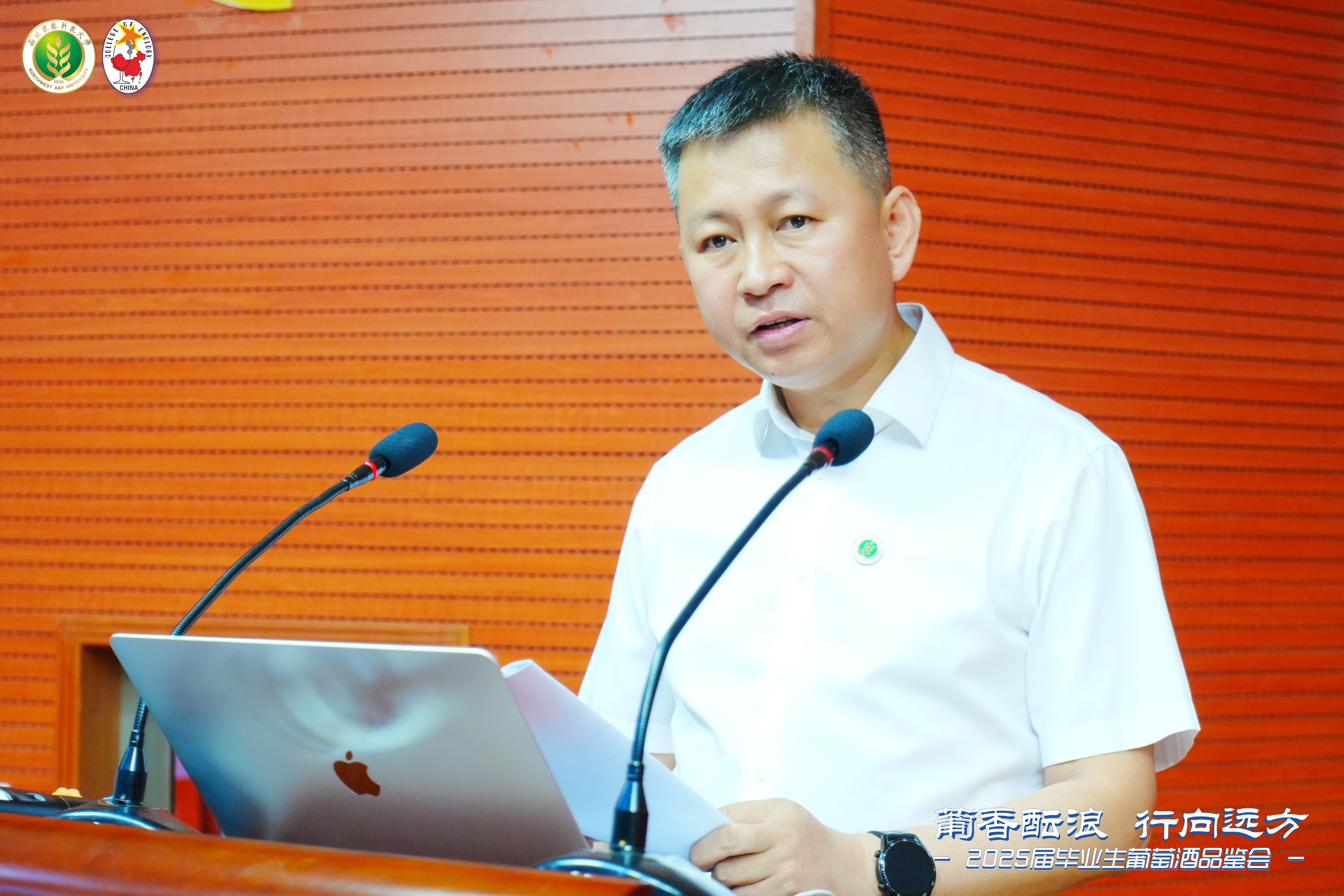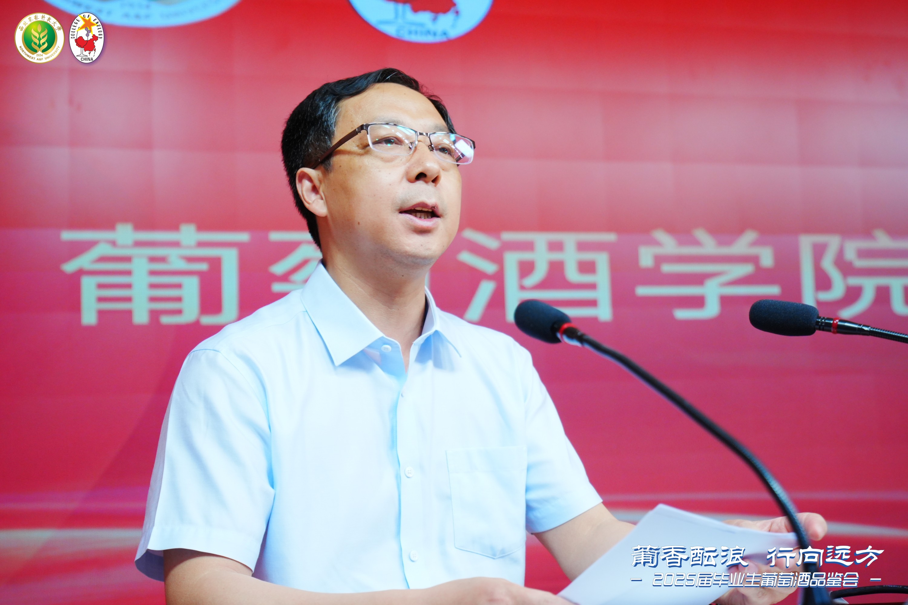 陶永胜院长代表学院向全体毕业生表示衷心的祝贺和美好的祝愿,向倾注心血的老师们致以崇高的敬意,向支持同学们完成学业的家长朋友们致以衷心的祝福。他对全体毕业生提出三点希望,一是要志存高远,服务国家担大任,用实际行动践行 “国之大者”,在中国葡萄酒产业发展的广阔天地中贡献智慧与力量。二是要笃行不怠,终身学习强本领。始终以推动中国葡萄酒产业高质量发展为使命,不断充实自我、提升能力,在持续学习与实践中实现个人价值与行业发展的有机统一。三是要开拓创新,勇立潮头求突破。要同学们以科学严谨的态度大胆尝试、勇于探索,以创新实践为中国葡萄酒产业发展注入新动能,助力中国葡萄酒在国际舞台上绽放独特魅力,彰显东方智慧与文化自信。
