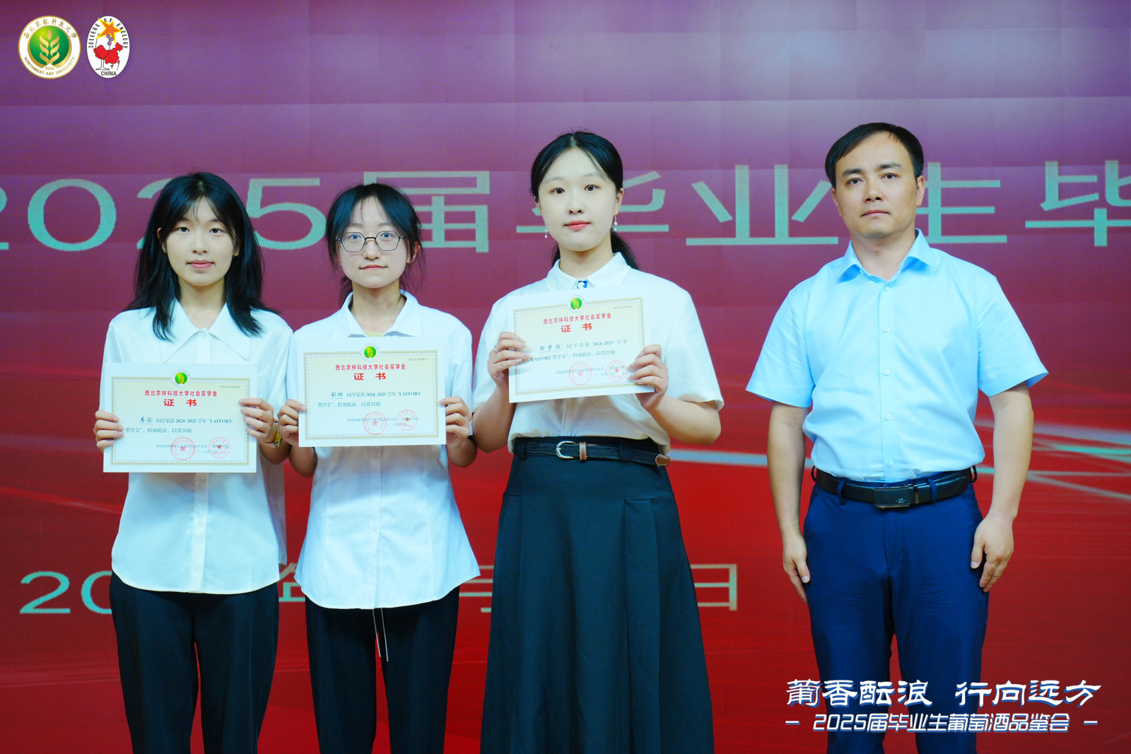 2025届志愿服务基层优秀毕业生和赴行业一线优秀毕业生的决定》和《关于聘任2025年应届毕业生校友联络员的决定》。对获评2025届优秀毕业生、优秀学生干部、赴行业一线优秀毕业生、志愿服务基层优秀毕业生、志愿服务边疆建设优秀毕业生和“李华科研创新奖”、校优秀学位论文、“Laffort奖学金”“华王NO.1奖励金”获得者进行表彰,为2025届应届毕业生校友联络员颁发聘书并向毕业生代表赠送刻有姓名的专属酒刀作为毕业礼物。